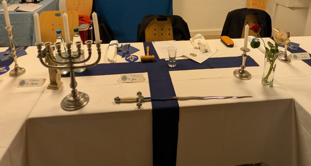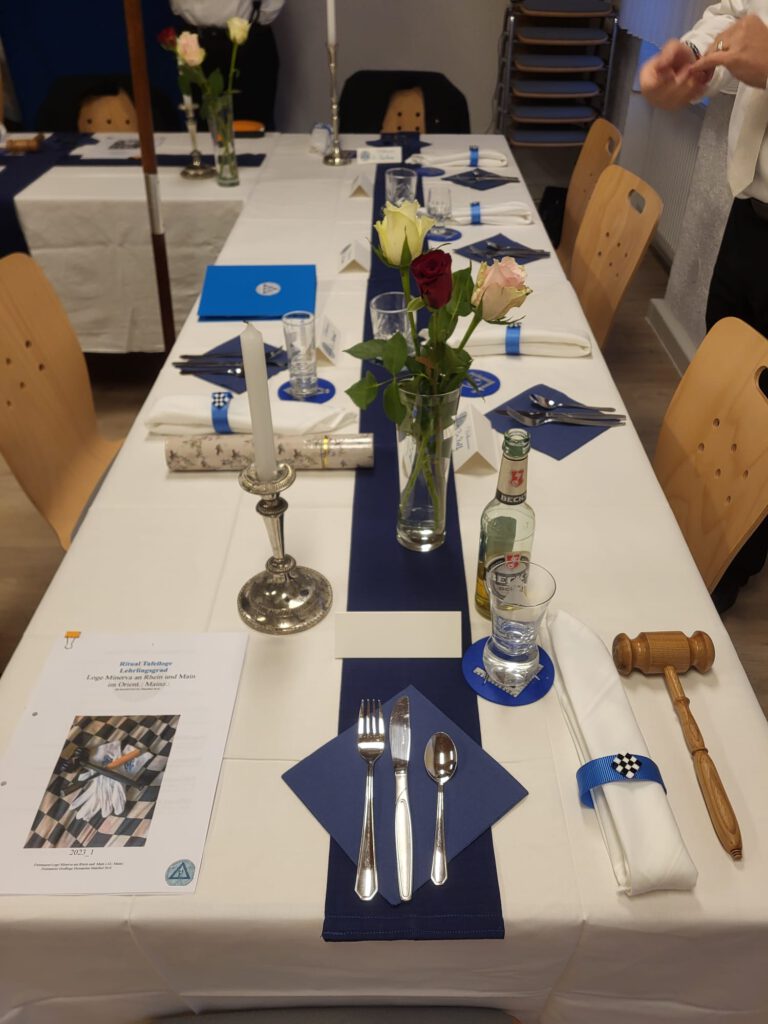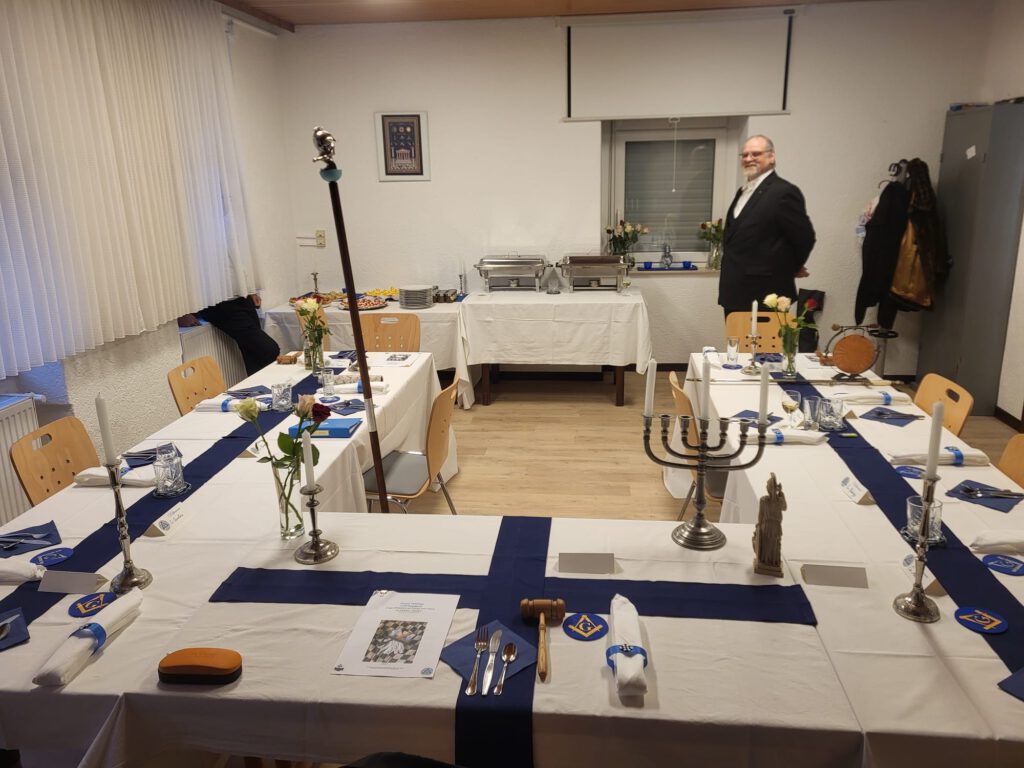 Ein besonderes Ereignis liegt hinter uns, unsere Tafelloge 2026. Die Brüder u. Schwestern unserer Loge zelebrieren am Samstag den 31.01.2026 eine dem Brauchtum entsprechende Tafelloge. Leckere Speisen und Getränke sowie Trinksprüche rundeten den Abend gehörig ab. Besonderen Dank gilt den Lehrlingen der Loge, die sich in mühevoller Arbeit von der Planung über den Einkauf sowie die Durchführung außerordentlich eingebracht haben. Sei es die Tischdecko, die Serviettenhalter, Untersetzer für Getränke als auch die Speisen. Ein mehrgäniges Menü aus vegetarischen sowie nicht-vegetarischen Speisen wurde von den LL zubereitet und den Brauchtum entsprechend gereicht.